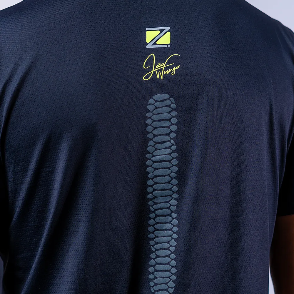 O detalhe da cobra nas costas e a assinatura do atleta João Wiesinger reforçam a identidade marcante da coleção, criada para quem joga com atitude.